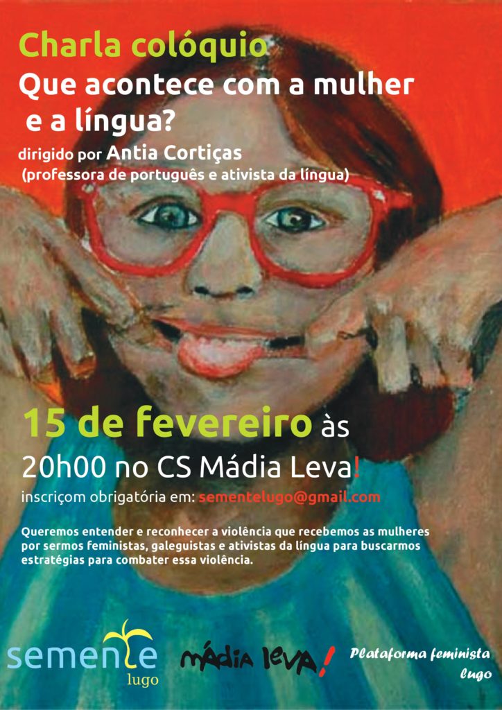 Com esta palestra-colóquio as mulheres da Semente, da Plataforma Feminista de Lugo e do CS Mádia Leva, queremos analisar (entender e reconhecer) a violência que recebemos as mulheres por sermos feministas, galeguistas e ativistas da língua.